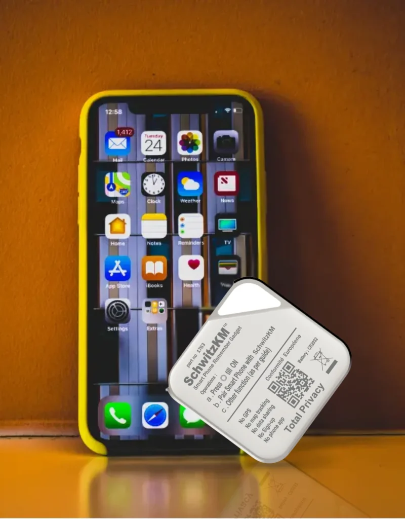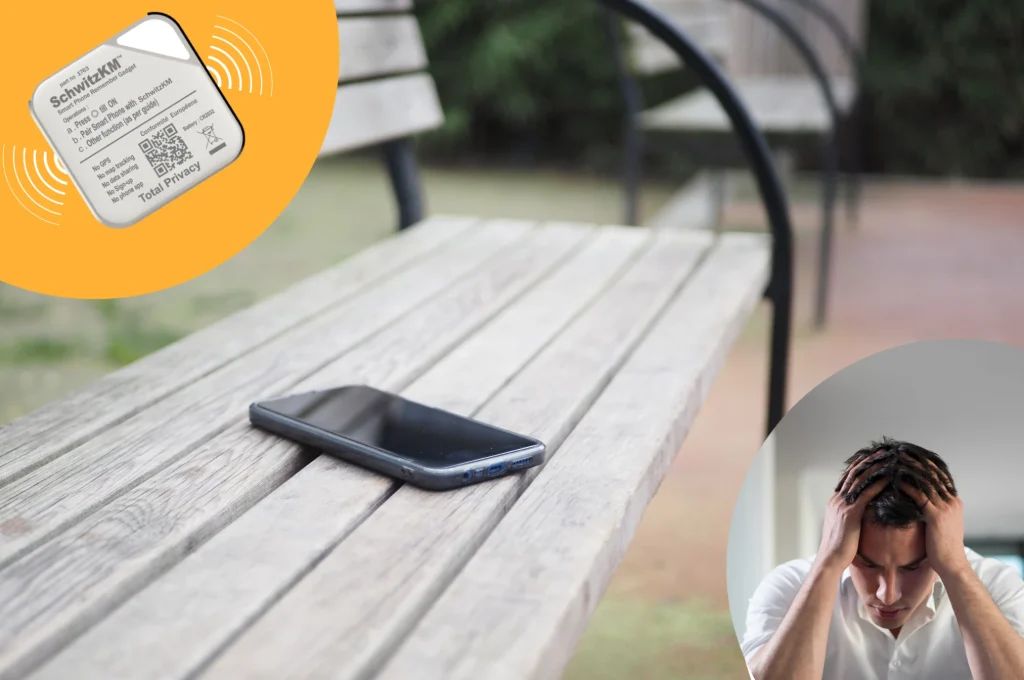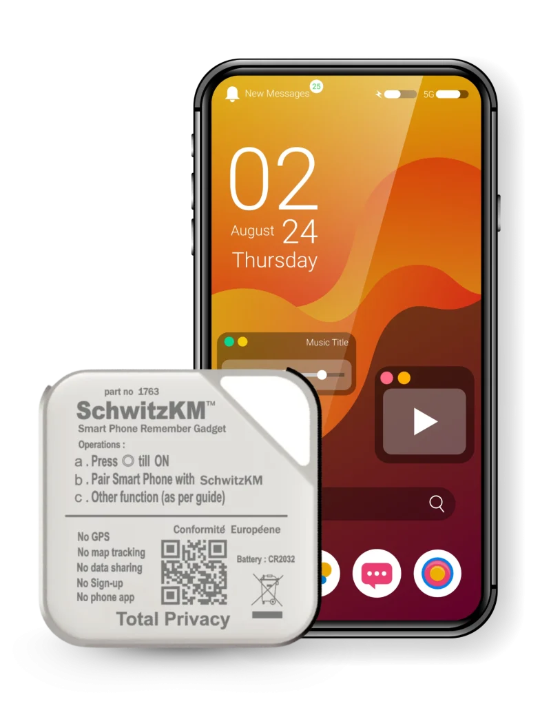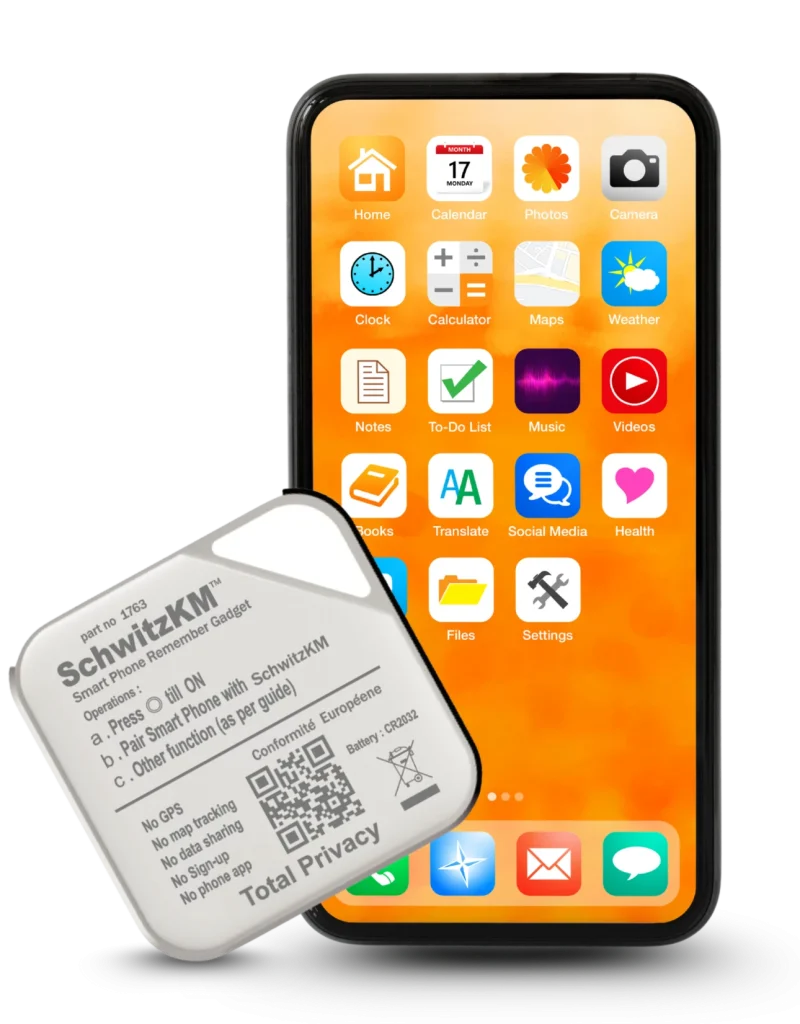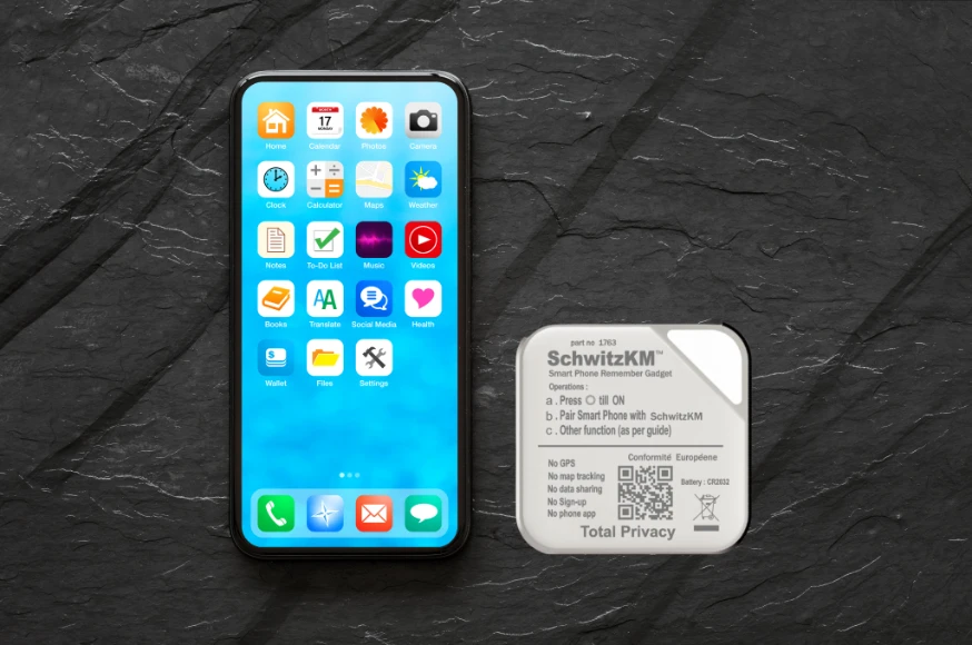 SchwitzKMâ„¢ will make you remember by alarm wherever your smart phone goes away from you 40 Ft -160 Ft . No Gps / No App / Total Privacy & No Recurring Cost.